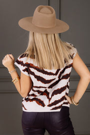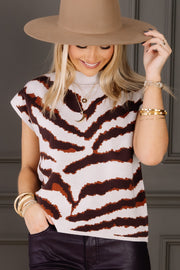 Stay cozy and stylish with the Have to Go Grey Tiger Print Sleeveless Sweater Top. Made from soft, comfortable material, this sleeveless vest features a trendy mock neckline and a bold camel tiger print, perfect for layering or wearing on its own.