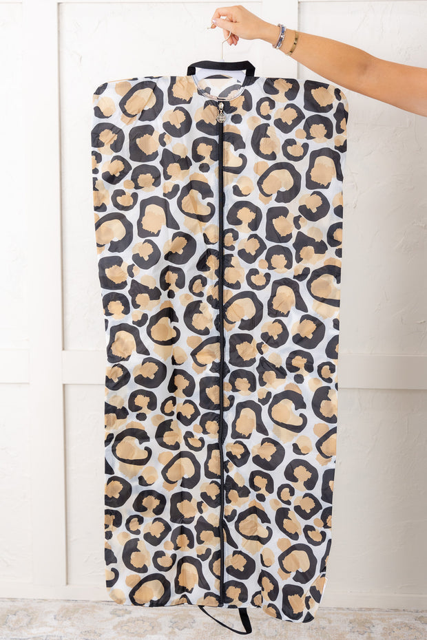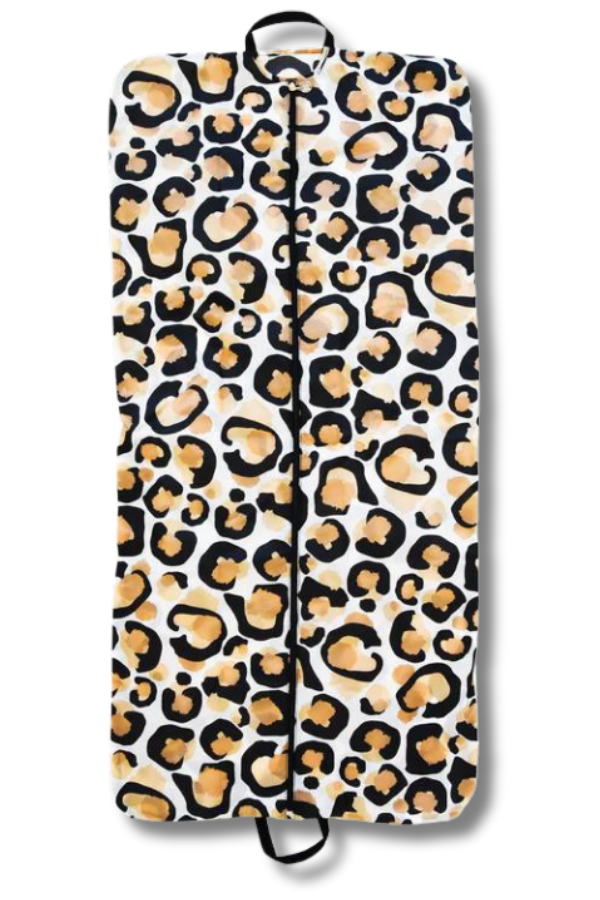 Designer, Emily McCarthy's Signature Spot Cheetah print in a travel garment bag. Crafted in nylon to cover all of your traveling or everyday necessities. Spot Cheetah was hand designed by Emily in our Savannah Studio to be spotted out in the wild. Bon- Voyage!