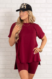 This elegant set features a rounded neckline, short sleeves, and a pull on waistband for a sophisticated look. Perfect for any occasion, it will make you feel confident and stylish as you lounge in comfort.