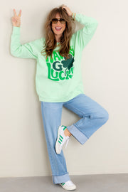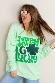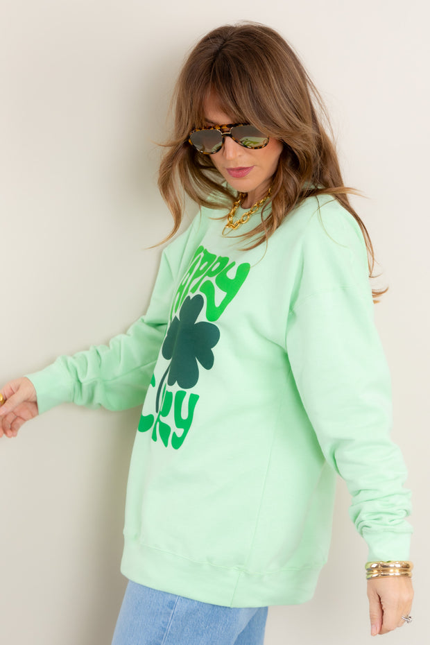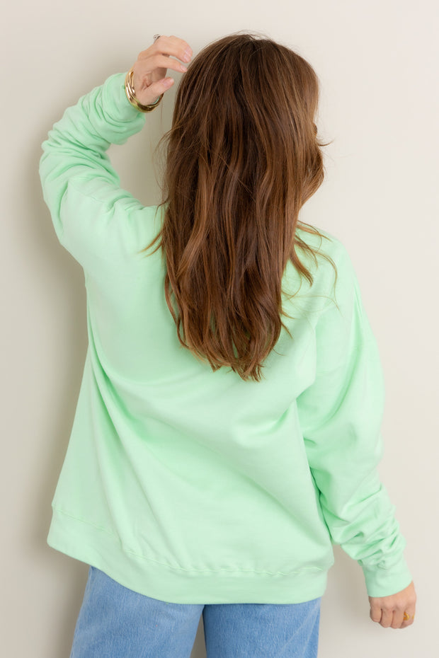Embrace positivity and style with this Sweatshirt. Its rounded neckline and long sleeves provide comfort and warmth, while the fleece interior adds a cozy touch.