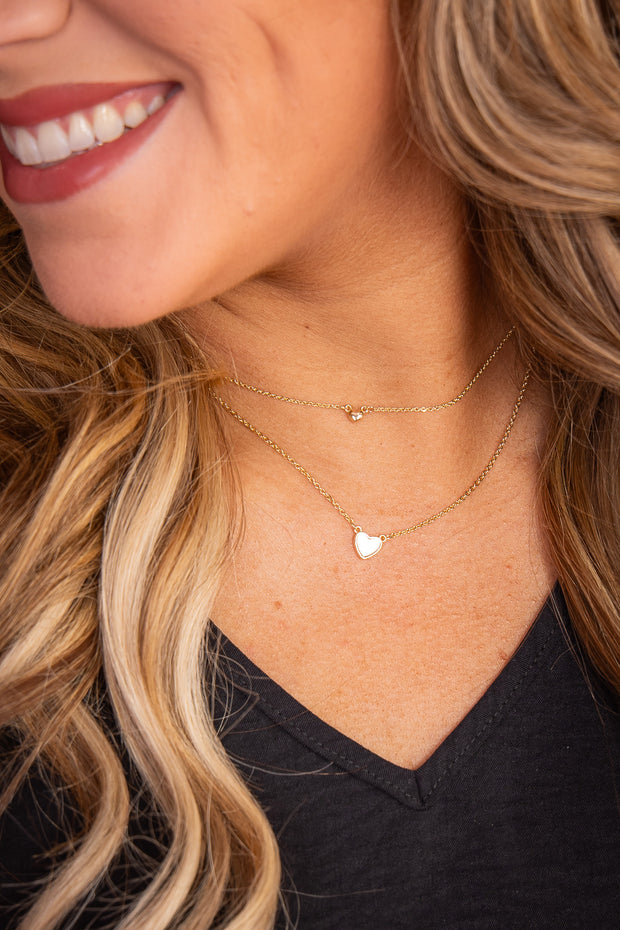 This layered necklace features a delicate heart accent, perfect for adding a touch of sweetness to any outfit. This piece is sure to become a beloved accessory for years to come. Its elegant design makes it versatile for both casual and formal occasions.