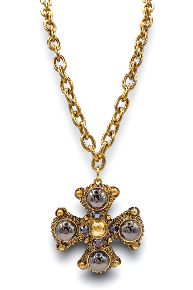 Statement necklaces are everywhere right now and this one is beautiful! this is a chain link necklace with a cross pendant featuring stones and hematite. This necklace is perfect for layering or worn by itself.