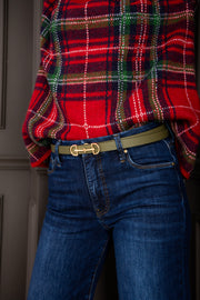 This belt features a classic horsebit buckle, adding a touch of sophistication to any outfit. The skinny design is both stylish and functional, as it can easily cinch in the waist for a flattering silhouette. Complete your look with this versatile accessory.