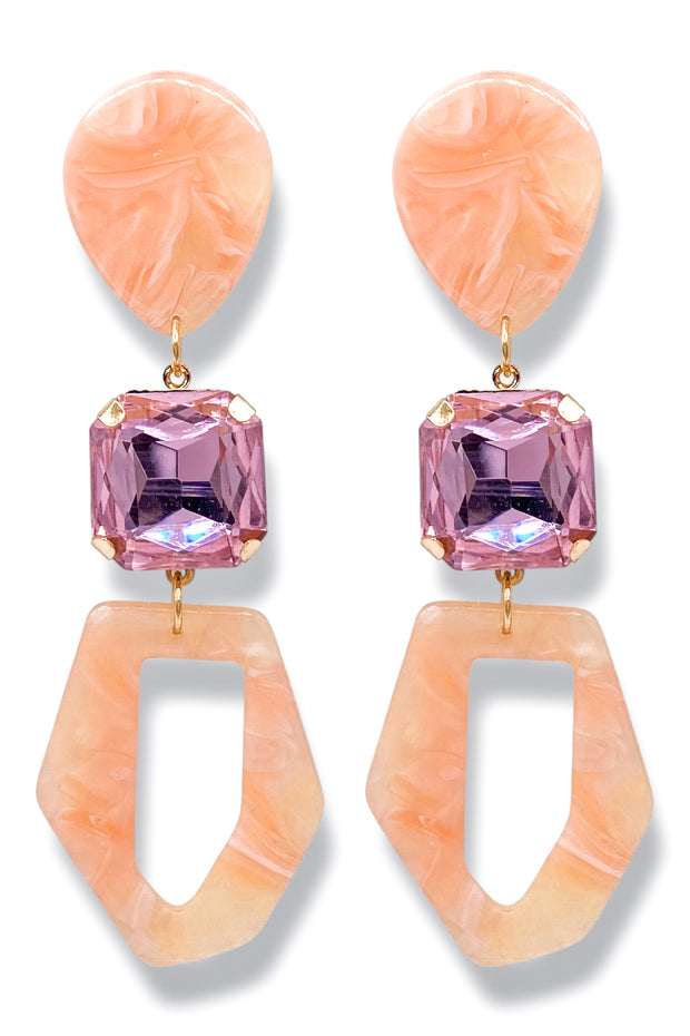 These elegant earrings feature hexagon-shaped crystal acrylic, creating a stunning and unique look. Expertly crafted with precision, these earrings are perfect for adding a touch of sophistication to any outfit.