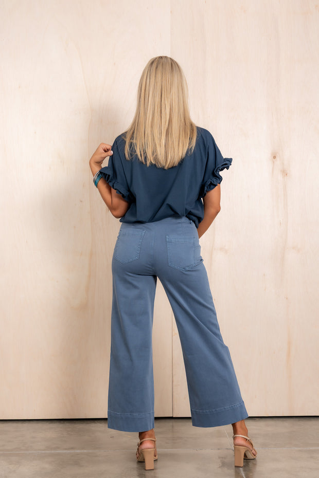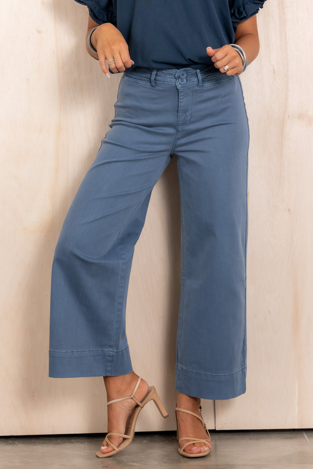 These Wide Leg Pants feature a front zip button closure and a high waistband for a secure, comfortable fit. Designed with side pockets and a wide leg silhouette, they offer both practicality and a relaxed style perfect for everyday wear.