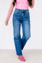 One Too Late High Rise Straight Leg Vintage Dark Blue Jean