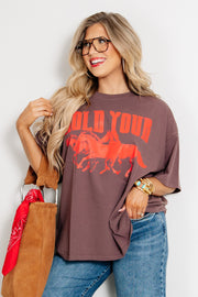 The Daydreamer Hold Your Horses Brown Short Sleeve Tee is made from breathable, comfortable material that keeps you cool all day. Its round neckline and short sleeves offer a relaxed, easygoing style perfect for everyday wear.