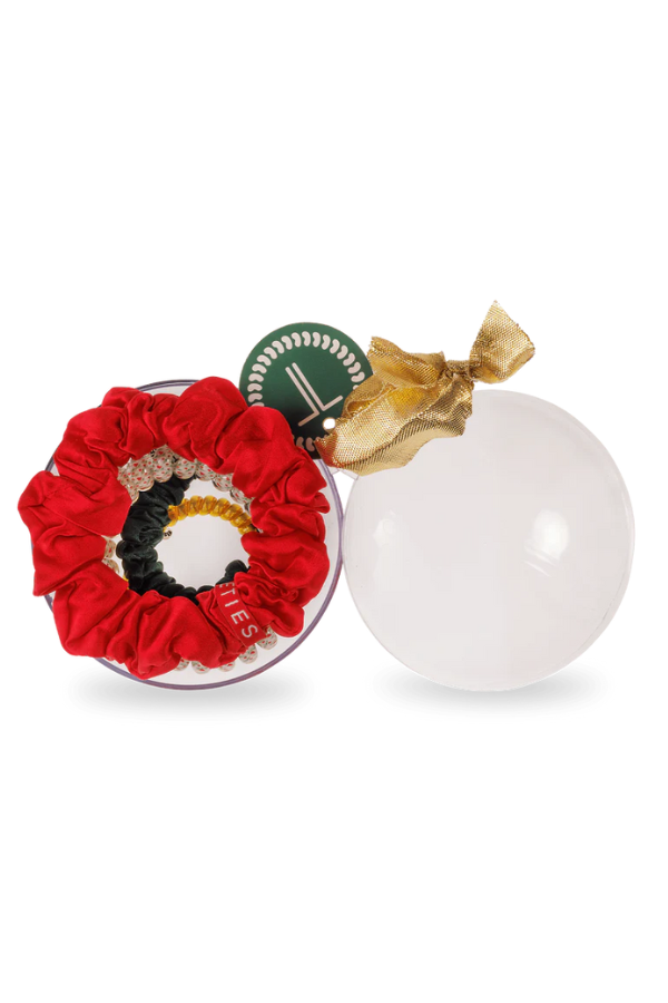 Introducing the TELETIES Holiday Ornament—the perfect blend of festive decor and stylish hair accessories! This enchanting bundle features a beautiful acrylic ornament that houses an exclusive mixed TELETIES pack inside, making it a standout addition to your holiday decorations.