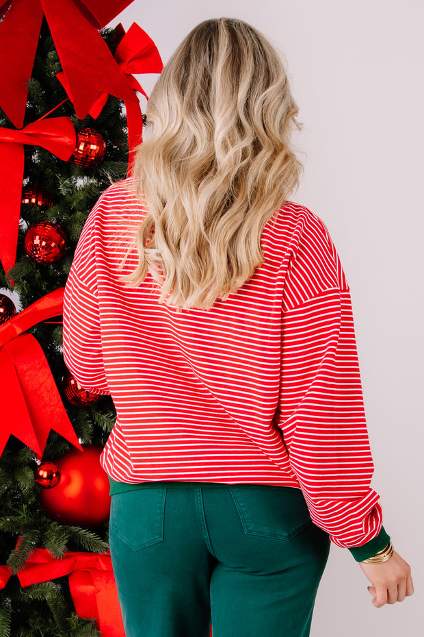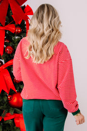 Holly Jolly Red & Green Striped Long Sleeve Pullover