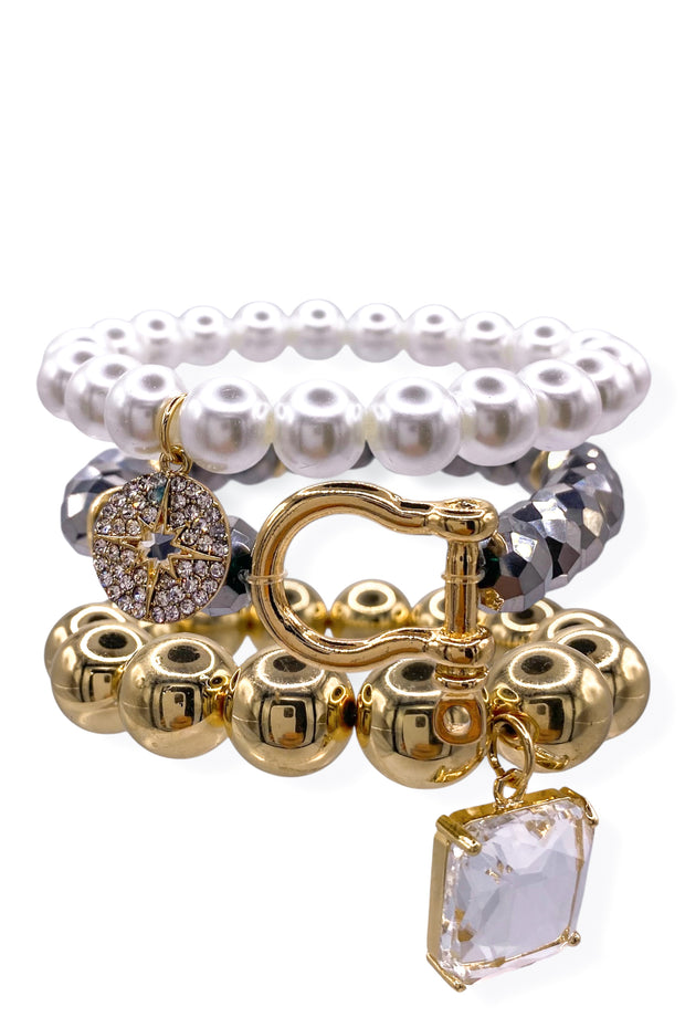 Expertly crafted with a stylish horse bit and bead design, this Bracelet Set is perfect for adding a touch of elegance to any outfit. Elevate your accessory game with this stunning set.