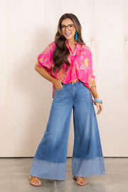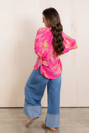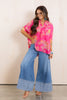 The v-neckline and short sleeves create a flattering silhouette, while the luxurious satin material adds a touch of elegance. Featuring an eye-catching abstract print, this top is perfect for any occasion.
