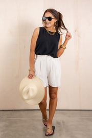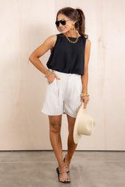 Introducing these Beige Linen Shorts, crafted from luxurious linen with a longer length for a sophisticated look. The front button closure and side pockets add functionality and style to these exclusive shorts.