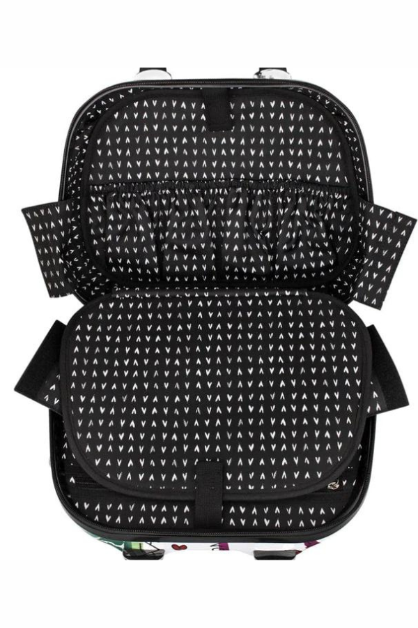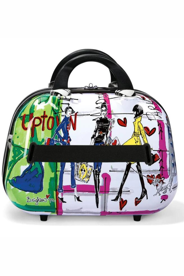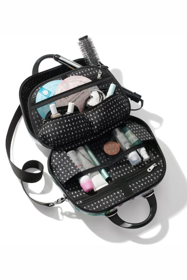 A classic silhouette is made new again with a durable, hard-shell exterior and Fashionista art from Tom Clancy. Inside, find all the organization you need with pockets aplenty--10, to be exact! Includes an elastic strap so you can secure it atop your rolling suitcase.