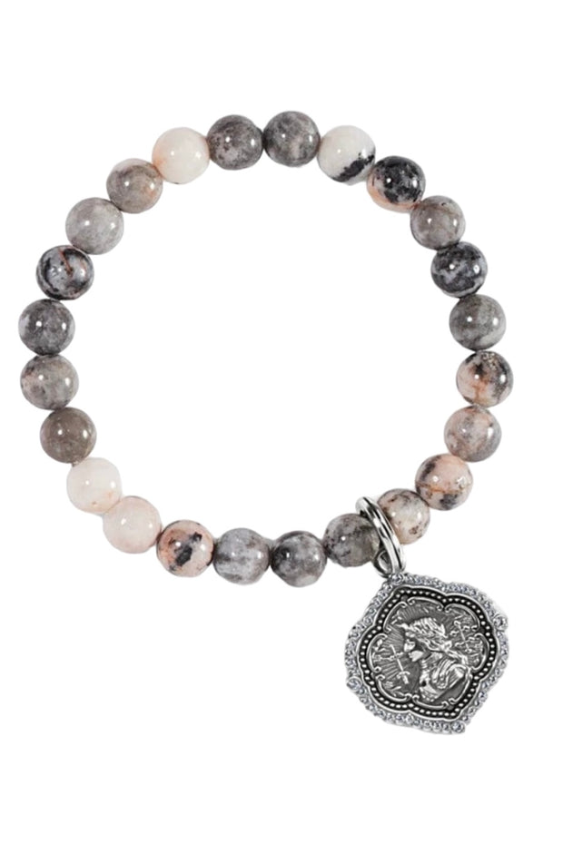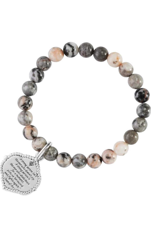 Joan Of Arc Stretch Bracelet, Celebrate inner strength and strong women of faith (like Joan of Arc) while wearing this stretch bracelet with multi-hued jasper beads.