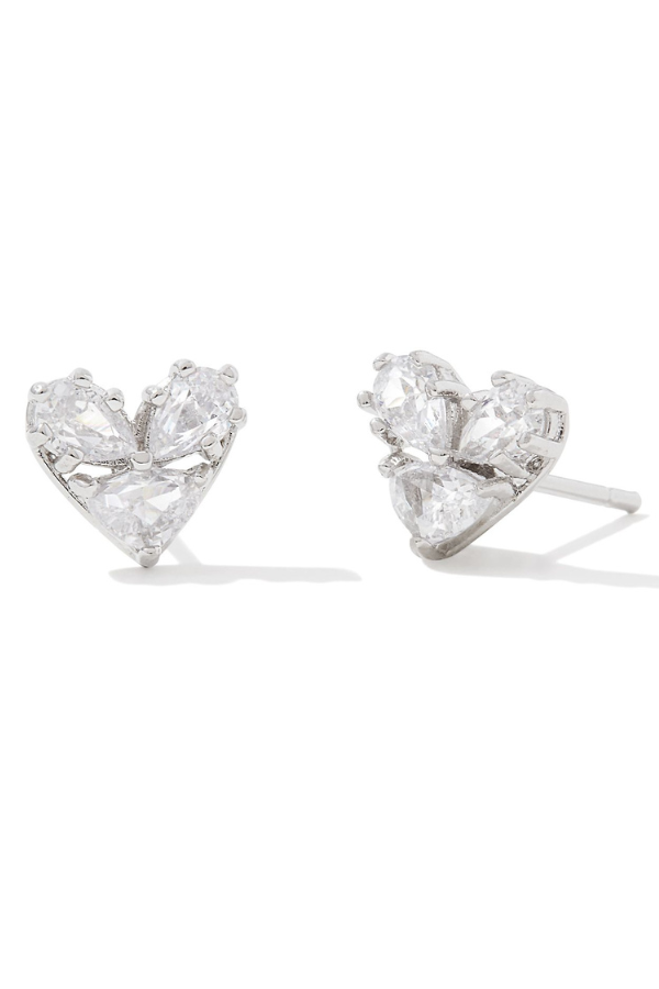 Katy Heart Stud Earrings - Silver White Cz | Kendra Scott