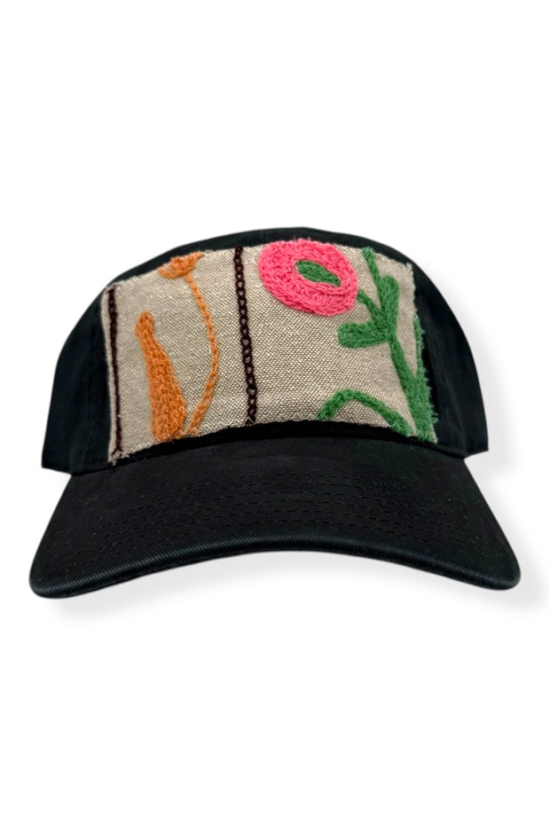 Your easy, throw-on-and-go, ball cap with Turkish kilim patch. No two are alike! One size hat with structured bill and a ball cap fit with adjustable snaps. Each piece has been stitched to ensure quality and discourage fraying (Fraying adds character your collectable) while maintaining the integrity of the fabric. However, due to the nature of the textiles, some fraying may occur. Additionally, color variations & imperfections should be expected as the norm. Wear with care!