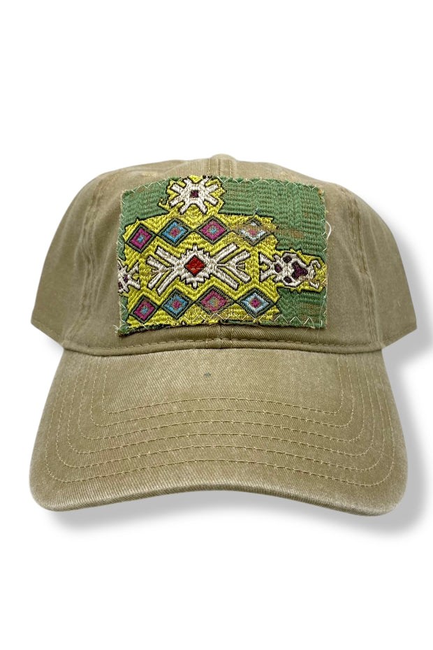 Your easy, throw-on-and-go, ball cap with Turkish kilim patch. No two are alike! One size hat with structured bill and a ball cap fit with adjustable snaps. Each piece has been stitched to ensure quality and discourage fraying (Fraying adds character your collectable) while maintaining the integrity of the fabric. However, due to the nature of the textiles, some fraying may occur. Additionally, color variations & imperfections should be expected as the norm. Wear with care!