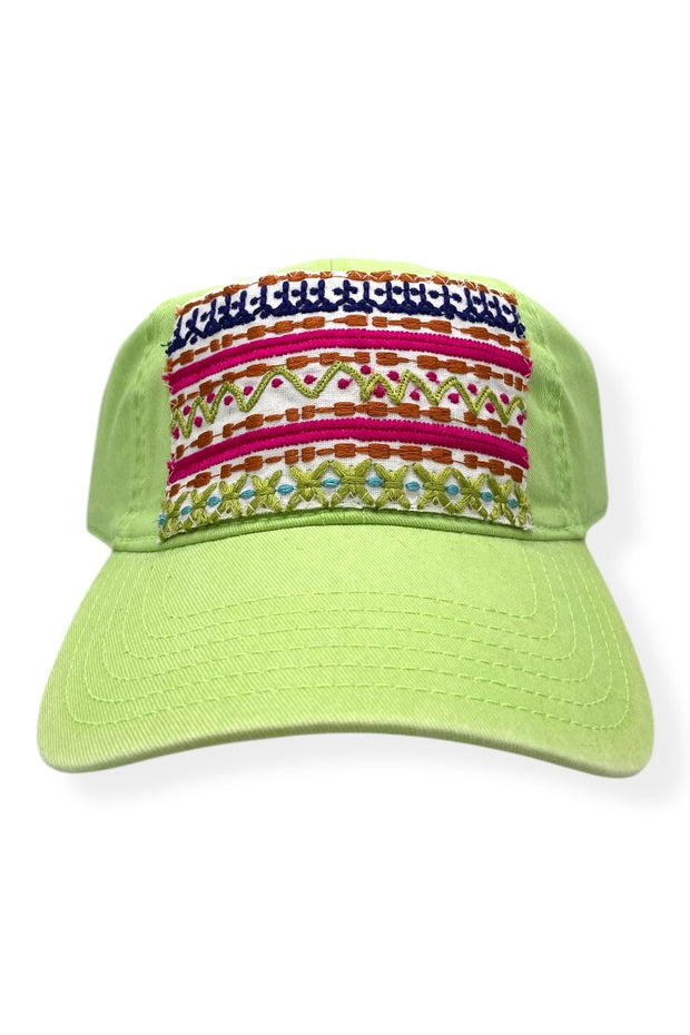 Your easy, throw-on-and-go, ball cap with Turkish kilim patch. No two are alike! One size hat with structured bill and a ball cap fit with adjustable snaps. Each piece has been stitched to ensure quality and discourage fraying (Fraying adds character your collectable) while maintaining the integrity of the fabric. However, due to the nature of the textiles, some fraying may occur. Additionally, color variations & imperfections should be expected as the norm. Wear with care!