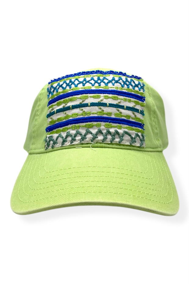 Your easy, throw-on-and-go, ball cap with Turkish kilim patch. No two are alike! One size hat with structured bill and a ball cap fit with adjustable snaps. Each piece has been stitched to ensure quality and discourage fraying (Fraying adds character your collectable) while maintaining the integrity of the fabric. However, due to the nature of the textiles, some fraying may occur. Additionally, color variations & imperfections should be expected as the norm. Wear with care!