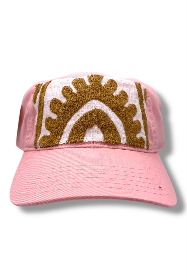 Your easy, throw-on-and-go, ball cap with Turkish kilim patch. No two are alike! One size hat with structured bill and a ball cap fit with adjustable snaps. Each piece has been stitched to ensure quality and discourage fraying (Fraying adds character your collectable) while maintaining the integrity of the fabric. However, due to the nature of the textiles, some fraying may occur. Additionally, color variations & imperfections should be expected as the norm. Wear with care!