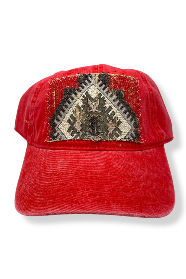 Your easy, throw-on-and-go, ball cap with Turkish kilim patch. No two are alike! One size hat with structured bill and a ball cap fit with adjustable snaps. Each piece has been stitched to ensure quality and discourage fraying (Fraying adds character your collectable) while maintaining the integrity of the fabric. However, due to the nature of the textiles, some fraying may occur. Additionally, color variations & imperfections should be expected as the norm. Wear with care!