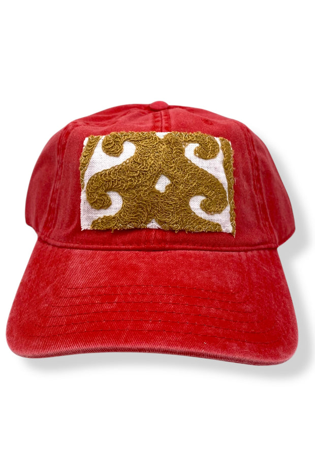Your easy, throw-on-and-go, ball cap with Turkish kilim patch. No two are alike! One size hat with structured bill and a ball cap fit with adjustable snaps. Each piece has been stitched to ensure quality and discourage fraying (Fraying adds character your collectable) while maintaining the integrity of the fabric. However, due to the nature of the textiles, some fraying may occur. Additionally, color variations & imperfections should be expected as the norm. Wear with care!