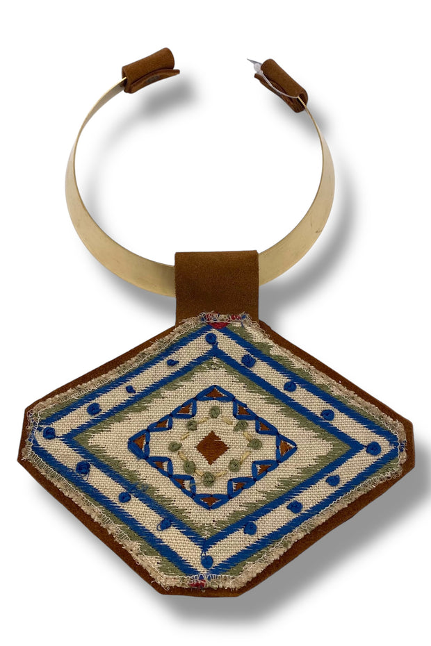 Backed with suede and packing a bold punch, these pendants are made from vintage Turkish kilim textiles and are one-of-a-kind. The ultimate statement piece. Each piece has been stitched to ensure quality and discourage fraying (Fraying adds character to your one of a kind piece!) while maintaining the integrity of the fabric. However, due to the nature of the textiles, some fraying may occur. Additionally, color variations & imperfections should be expected as the norm. Wear with care!