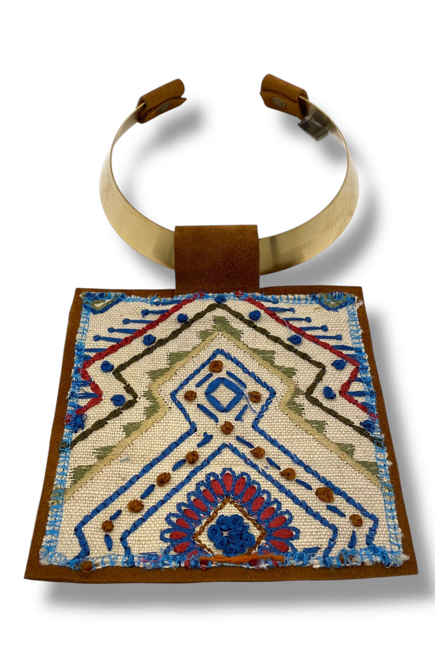 Backed with suede and packing a bold punch, these pendants are made from vintage Turkish kilim textiles and are one-of-a-kind. The ultimate statement piece. Each piece has been stitched to ensure quality and discourage fraying (Fraying adds character to your one of a kind piece!) while maintaining the integrity of the fabric. However, due to the nature of the textiles, some fraying may occur. Additionally, color variations & imperfections should be expected as the norm. Wear with care!