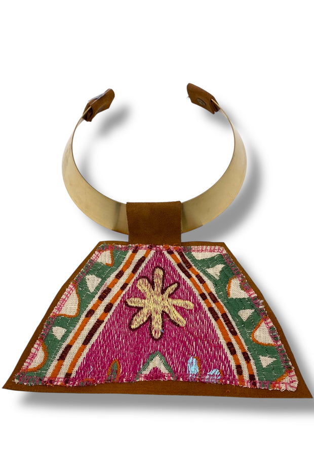 Backed with suede and packing a bold punch, these pendants are made from vintage Turkish kilim textiles and are one-of-a-kind. The ultimate statement piece. Each piece has been stitched to ensure quality and discourage fraying (Fraying adds character to your one of a kind piece!) while maintaining the integrity of the fabric. However, due to the nature of the textiles, some fraying may occur. Additionally, color variations & imperfections should be expected as the norm. Wear with care!