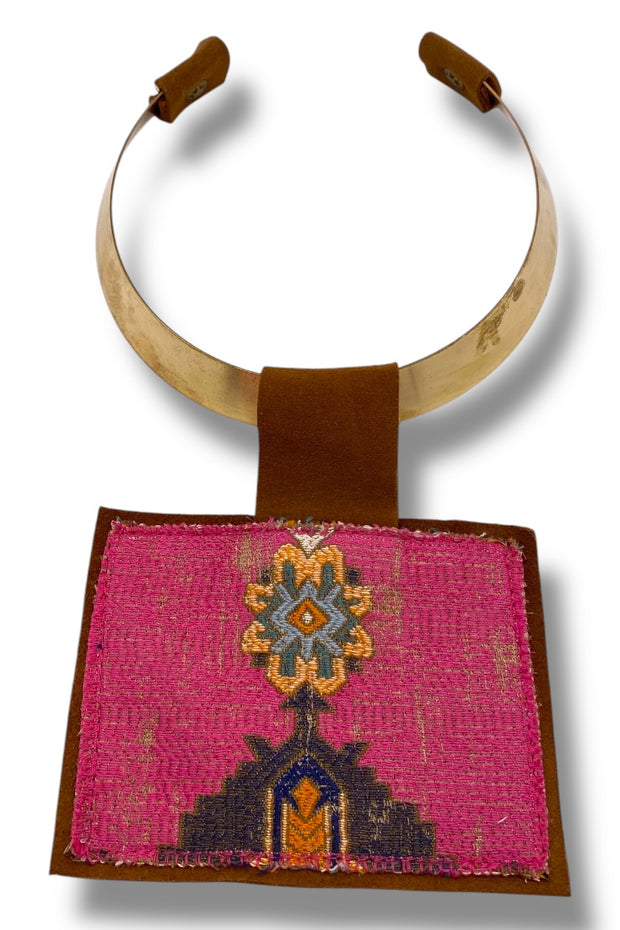 Backed with suede and packing a bold punch, these pendants are made from vintage Turkish kilim textiles and are one-of-a-kind. The ultimate statement piece. Each piece has been stitched to ensure quality and discourage fraying (Fraying adds character to your one of a kind piece!) while maintaining the integrity of the fabric. However, due to the nature of the textiles, some fraying may occur. Additionally, color variations & imperfections should be expected as the norm. Wear with care!