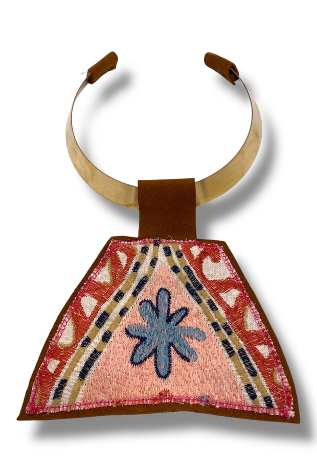 Backed with suede and packing a bold punch, these pendants are made from vintage Turkish kilim textiles and are one-of-a-kind. The ultimate statement piece. Each piece has been stitched to ensure quality and discourage fraying (Fraying adds character to your one of a kind piece!) while maintaining the integrity of the fabric. However, due to the nature of the textiles, some fraying may occur. Additionally, color variations & imperfections should be expected as the norm. Wear with care!