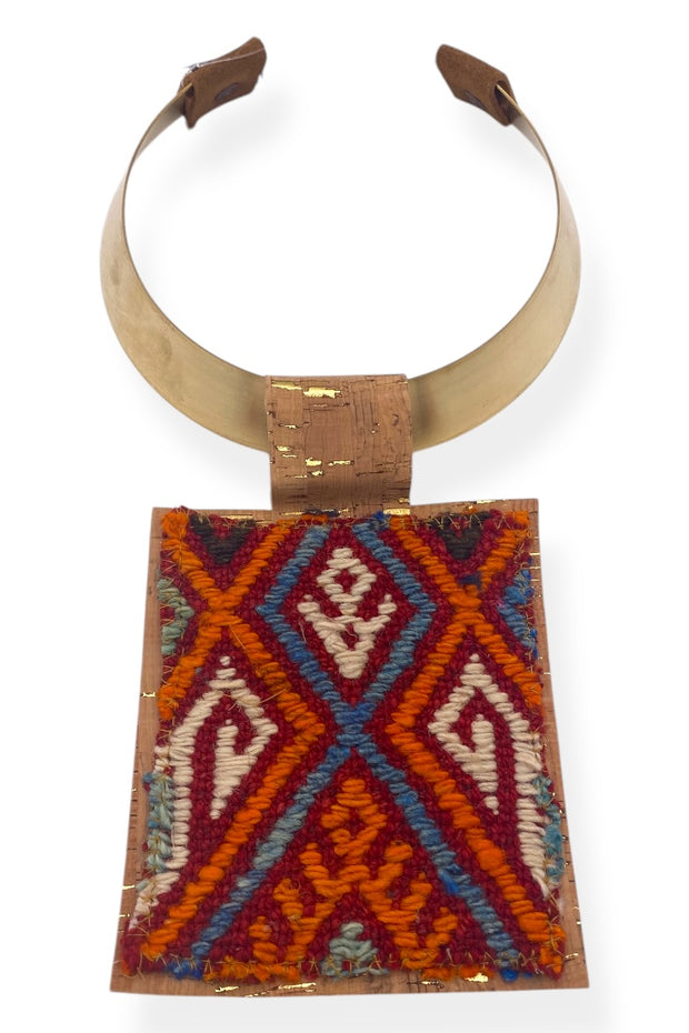 Backed with suede and packing a bold punch, these pendants are made from vintage Turkish kilim textiles and are one-of-a-kind. The ultimate statement piece. Each piece has been stitched to ensure quality and discourage fraying (Fraying adds character to your one of a kind piece!) while maintaining the integrity of the fabric. However, due to the nature of the textiles, some fraying may occur. Additionally, color variations & imperfections should be expected as the norm. Wear with care!