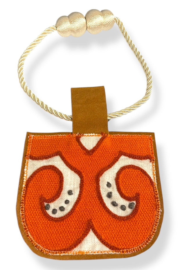 Backed with suede and packing a bold punch, these pendants are made from vintage Turkish kilim textiles and are one-of-a-kind. The ultimate statement piece. Each piece has been stitched to ensure quality and discourage fraying (Fraying adds character to your one of a kind piece!) while maintaining the integrity of the fabric. However, due to the nature of the textiles, some fraying may occur. Additionally, color variations & imperfections should be expected as the norm. Wear with care!
