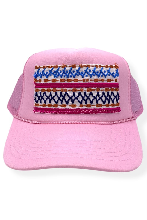 Your easy, throw-on-and-go, trucker with Turkish kilim patch. No two are alike! One size hat with structured bill and mesh back with adjustable snaps. Each piece has been stitched to ensure quality and discourage fraying (Fraying adds character your collectable) while maintaining the integrity of the fabric. However, due to the nature of the textiles, some fraying may occur. Additionally, color variations & imperfections should be expected as the norm. Wear with care!