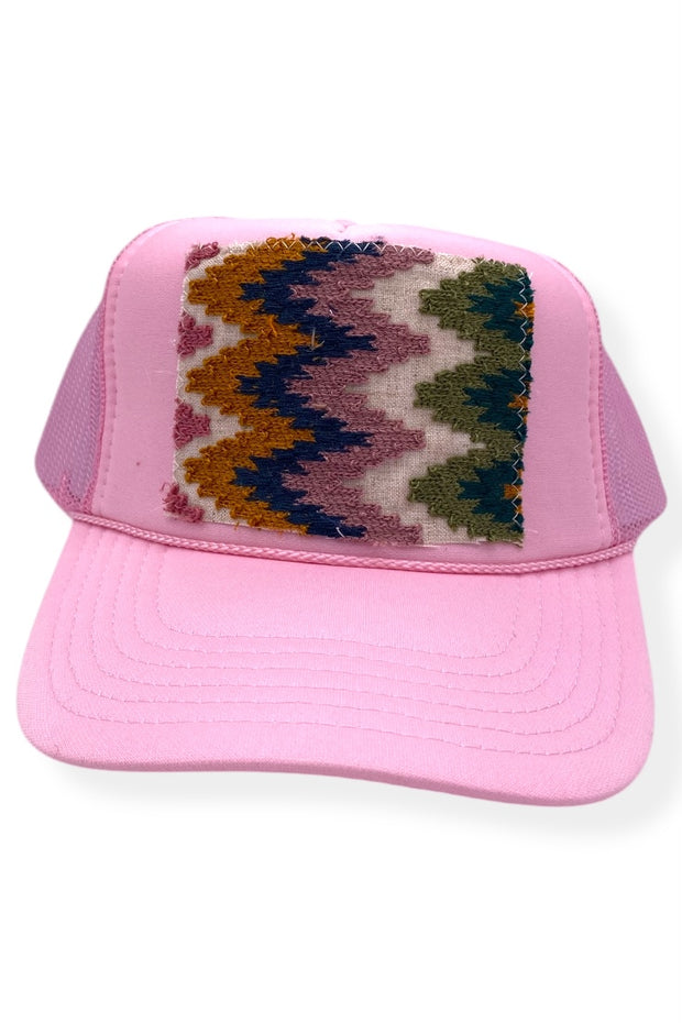 Your easy, throw-on-and-go, trucker with Turkish kilim patch. No two are alike! One size hat with structured bill and mesh back with adjustable snaps. Each piece has been stitched to ensure quality and discourage fraying (Fraying adds character your collectable) while maintaining the integrity of the fabric. However, due to the nature of the textiles, some fraying may occur. Additionally, color variations & imperfections should be expected as the norm. Wear with care!