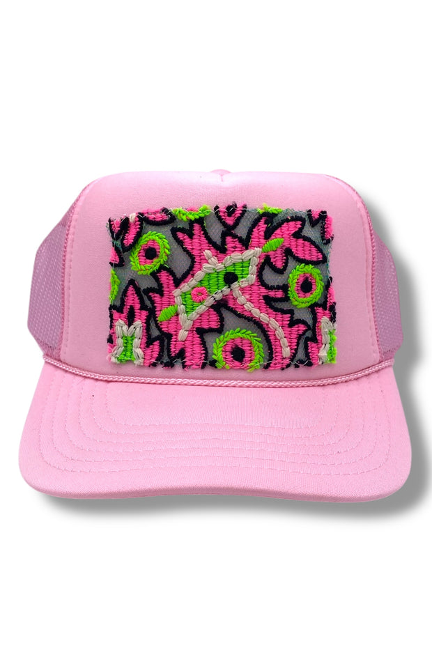 Your easy, throw-on-and-go, trucker with Turkish kilim patch. No two are alike! One size hat with structured bill and mesh back with adjustable snaps. Each piece has been stitched to ensure quality and discourage fraying (Frayering adds character your collectable) while maintaining the integrity of the fabric. However, due to the nature of the textiles, some fraying may occur. Additionally, color variations & imperfections should be expected as the norm. Wear with care!