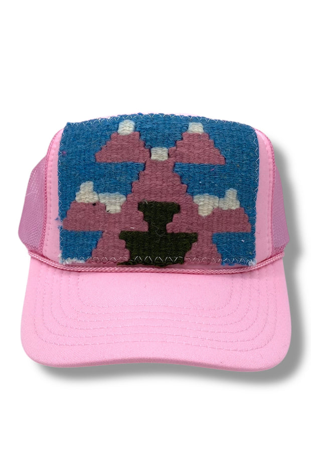 Your easy, throw-on-and-go, trucker with Turkish kilim patch. No two are alike! One size hat with structured bill and mesh back with adjustable snaps. Each piece has been stitched to ensure quality and discourage fraying (Frayering adds character your collectable) while maintaining the integrity of the fabric. However, due to the nature of the textiles, some fraying may occur. Additionally, color variations & imperfections should be expected as the norm. Wear with care!