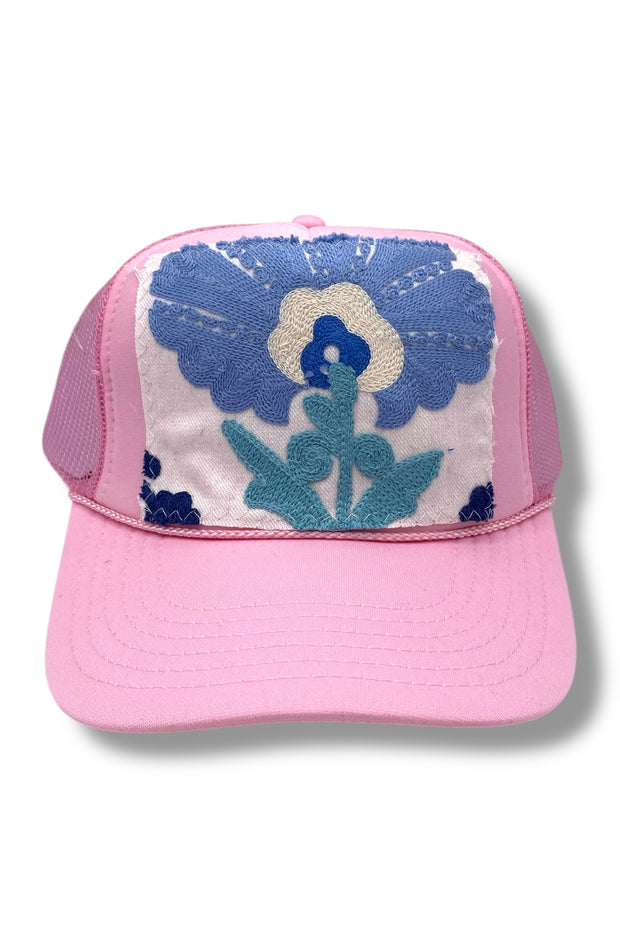 Your easy, throw-on-and-go, trucker with Turkish kilim patch. No two are alike! One size hat with structured bill and mesh back with adjustable snaps. Each piece has been stitched to ensure quality and discourage fraying (Frayering adds character your collectable) while maintaining the integrity of the fabric. However, due to the nature of the textiles, some fraying may occur. Additionally, color variations & imperfections should be expected as the norm. Wear with care!