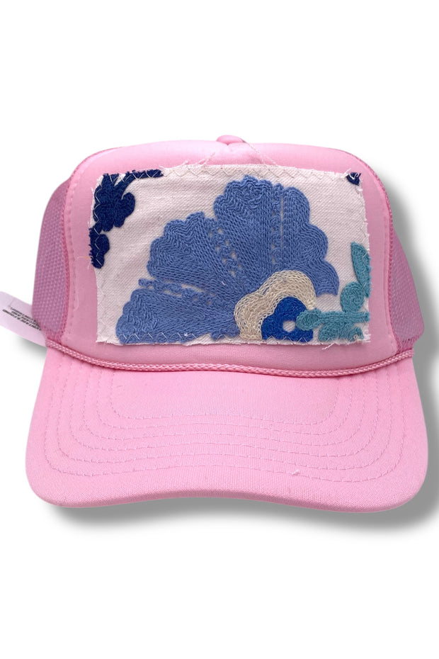 Your easy, throw-on-and-go, trucker with Turkish kilim patch. No two are alike! One size hat with structured bill and mesh back with adjustable snaps. Each piece has been stitched to ensure quality and discourage fraying (Frayering adds character your collectable) while maintaining the integrity of the fabric. However, due to the nature of the textiles, some fraying may occur. Additionally, color variations & imperfections should be expected as the norm. Wear with care!
