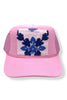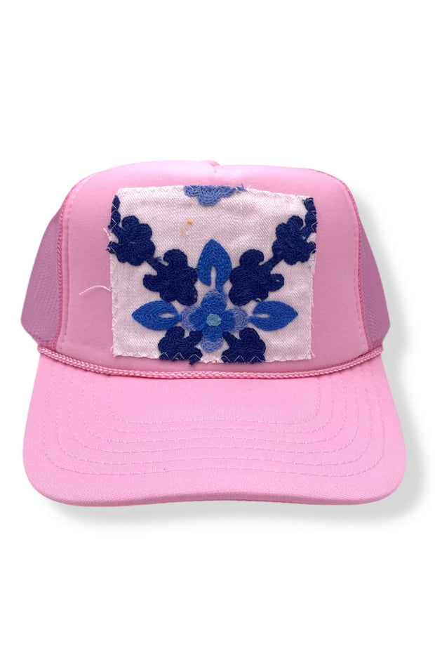 Your easy, throw-on-and-go, trucker with Turkish kilim patch. No two are alike! One size hat with structured bill and mesh back with adjustable snaps. Each piece has been stitched to ensure quality and discourage fraying (Fraying adds character your collectable) while maintaining the integrity of the fabric. However, due to the nature of the textiles, some fraying may occur. Additionally, color variations & imperfections should be expected as the norm. Wear with care!