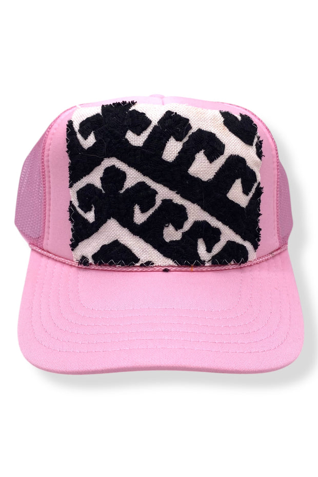 Your easy, throw-on-and-go, trucker with Turkish kilim patch. No two are alike! One size hat with structured bill and mesh back with adjustable snaps. Each piece has been stitched to ensure quality and discourage fraying (Fraying adds character your collectable) while maintaining the integrity of the fabric. However, due to the nature of the textiles, some fraying may occur. Additionally, color variations & imperfections should be expected as the norm. Wear with care!