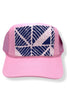 Your easy, throw-on-and-go, trucker with Turkish kilim patch. No two are alike! One size hat with structured bill and mesh back with adjustable snaps. Each piece has been stitched to ensure quality and discourage fraying (Fraying adds character your collectable) while maintaining the integrity of the fabric. However, due to the nature of the textiles, some fraying may occur. Additionally, color variations & imperfections should be expected as the norm. Wear with care!