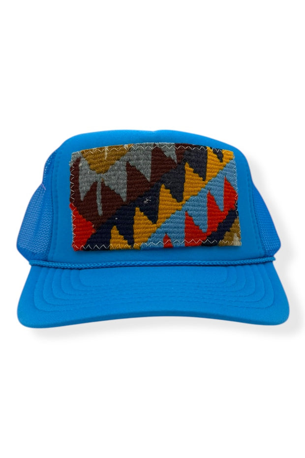 Your easy, throw-on-and-go, trucker with Turkish kilim patch. No two are alike! One size hat with structured bill and mesh back with adjustable snaps. Each piece has been stitched to ensure quality and discourage fraying (Fraying adds character your collectable) while maintaining the integrity of the fabric. However, due to the nature of the textiles, some fraying may occur. Additionally, color variations & imperfections should be expected as the norm. Wear with care!