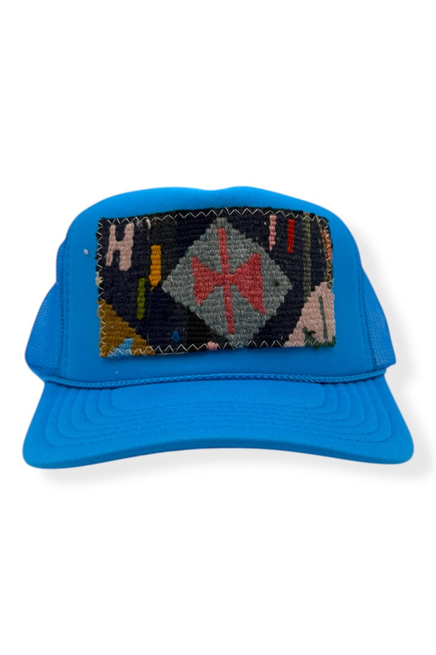 Your easy, throw-on-and-go, trucker with Turkish kilim patch. No two are alike! One size hat with structured bill and mesh back with adjustable snaps. Each piece has been stitched to ensure quality and discourage fraying (Fraying adds character your collectable) while maintaining the integrity of the fabric. However, due to the nature of the textiles, some fraying may occur. Additionally, color variations & imperfections should be expected as the norm. Wear with care!