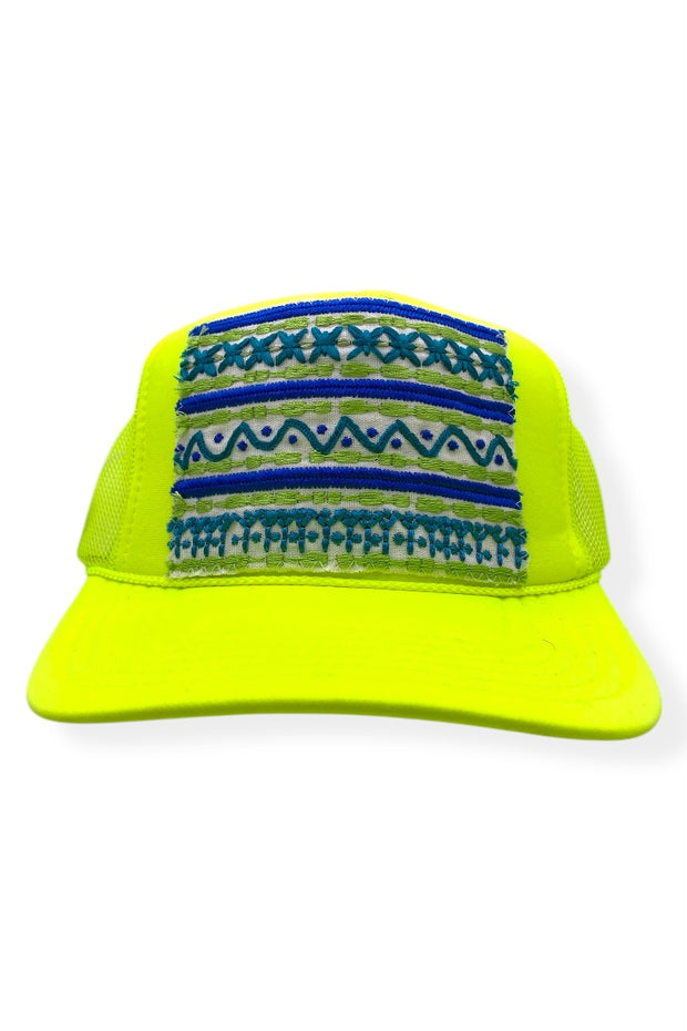 Your easy, throw-on-and-go, trucker with Turkish kilim patch. No two are alike! One size hat with structured bill and mesh back with adjustable snaps. Each piece has been stitched to ensure quality and discourage fraying (Fraying adds character your collectable) while maintaining the integrity of the fabric. However, due to the nature of the textiles, some fraying may occur. Additionally, color variations & imperfections should be expected as the norm. Wear with care!