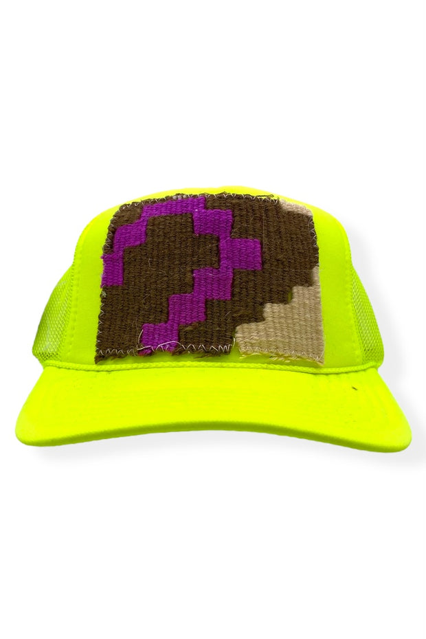 Your easy, throw-on-and-go, trucker with Turkish kilim patch. No two are alike! One size hat with structured bill and mesh back with adjustable snaps. Each piece has been stitched to ensure quality and discourage fraying (Fraying adds character your collectable) while maintaining the integrity of the fabric. However, due to the nature of the textiles, some fraying may occur. Additionally, color variations & imperfections should be expected as the norm. Wear with care!