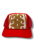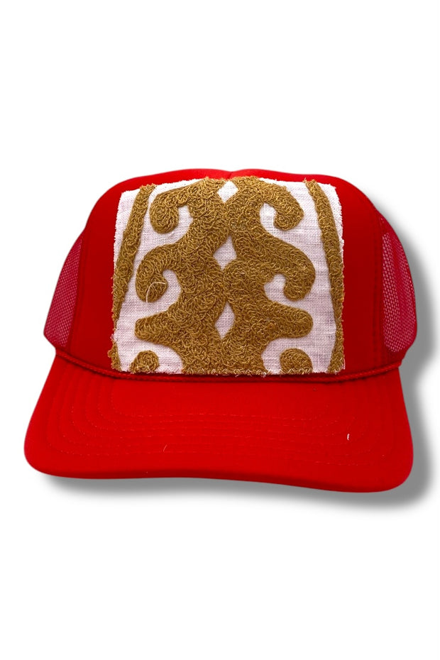 Your easy, throw-on-and-go, trucker with Turkish kilim patch. No two are alike! One size hat with structured bill and mesh back with adjustable snaps. Each piece has been stitched to ensure quality and discourage fraying (Fraying adds character your collectable) while maintaining the integrity of the fabric. However, due to the nature of the textiles, some fraying may occur. Additionally, color variations & imperfections should be expected as the norm. Wear with care!