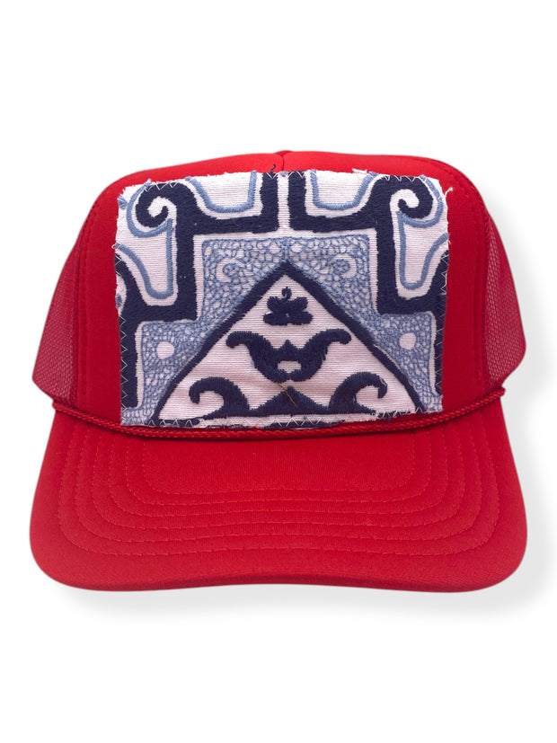 Your easy, throw-on-and-go, trucker with Turkish kilim patch. No two are alike! One size hat with structured bill and mesh back with adjustable snaps. Each piece has been stitched to ensure quality and discourage fraying (Fraying adds character your collectable) while maintaining the integrity of the fabric. However, due to the nature of the textiles, some fraying may occur. Additionally, color variations & imperfections should be expected as the norm. Wear with care!