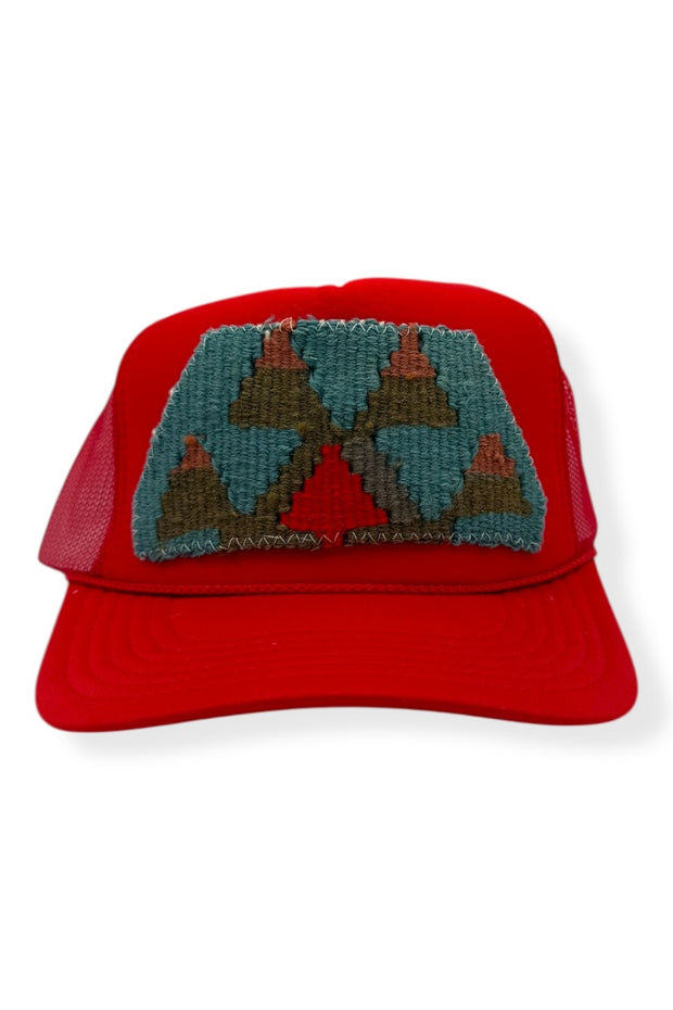 Your easy, throw-on-and-go, trucker with Turkish kilim patch. No two are alike! One size hat with structured bill and mesh back with adjustable snaps. Each piece has been stitched to ensure quality and discourage fraying (Fraying adds character your collectable) while maintaining the integrity of the fabric. However, due to the nature of the textiles, some fraying may occur. Additionally, color variations & imperfections should be expected as the norm. Wear with care!