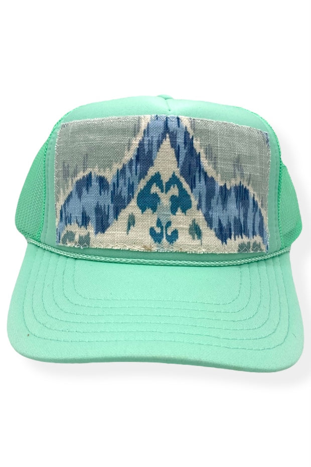 Your easy, throw-on-and-go, trucker with Turkish kilim patch. No two are alike! One size hat with structured bill and mesh back with adjustable snaps. Each piece has been stitched to ensure quality and discourage fraying (Fraying adds character your collectable) while maintaining the integrity of the fabric. However, due to the nature of the textiles, some fraying may occur. Additionally, color variations & imperfections should be expected as the norm. Wear with care!